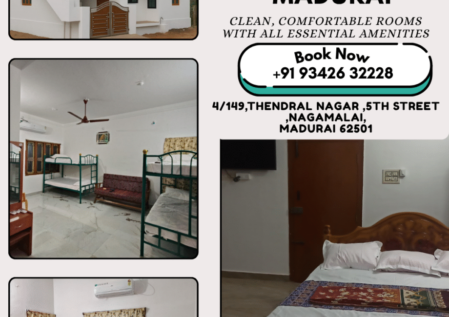 Jammu Home Stay offers more than just a place to stay – it provides a peaceful and homely environment where comfort and care come together. Located in the serene surroundings of Nagamalai Pudukottai, Madurai, our 3BHK home stay is ideal for families, friends, and travelers looking for space, privacy, and affordability. Guests enjoy clean, well-maintained rooms, modern amenities, and the warmth of a home away from home. Whether you’re visiting for a short trip or an extended stay, we ensure a hassle-free and relaxing experience. With easy access to the city and local attractions, Jammu Home Stay is your perfect choice for a pleasant stay in Madurai.